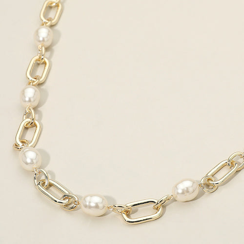 16″ Silver Paperclip Link Necklace with Rectangular Studded Pendant, Statement Style -